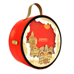 Caja de regalo de cartón reciclable creativa, embalaje de rosas redondas con asas para alimentos, solución de almacenamiento ecológica