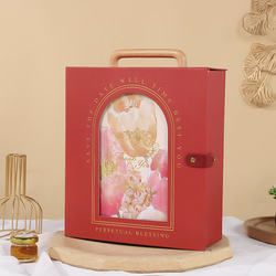 Alta Qualidade tulipa padrão De Madeira handheld Casamento Caixa De Presente De Luxo Holiday Gift Packaging Box ouro Hot Stamping Hand Box